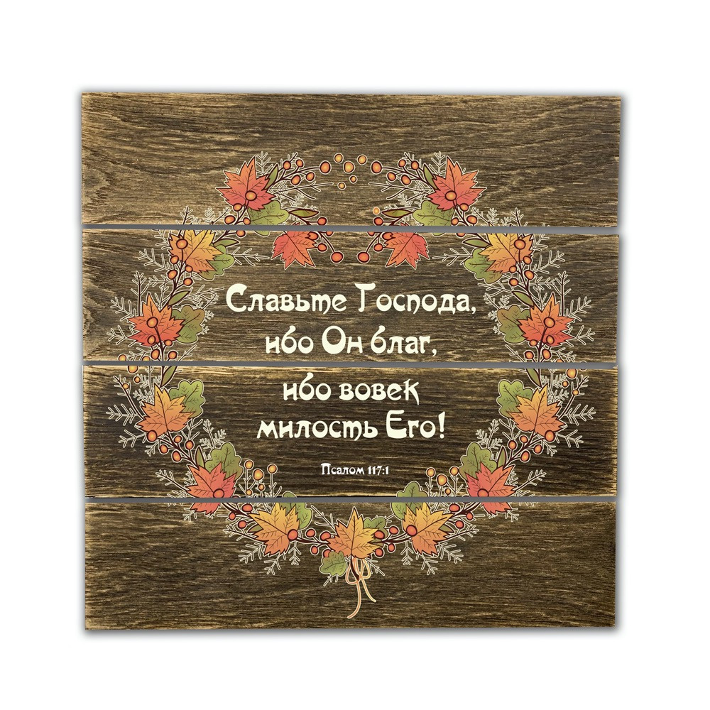 Декоративне дерев'яне панно Щит Славте Господа Бо Він добрий Бо навіки милість Його (рос)